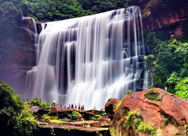 早餐后前往當(dāng)?shù)厣鐣唐妨闶燮髽I(yè)自由活動并領(lǐng)精美紀(jì)念品,名特產(chǎn)品(較為著名云上赤水泰和乳膠、逸可瑞斯乳膠等,主要銷售乳膠制品),自由活動后前往【赤水大瀑布】欣賞美譽(yù)中國的簾狀瀑布典型代表中洞瀑布。觀氣勢恢弘的赤水大瀑布(寬81米,高76米),是亞洲最大的瀑布,也是“世界丹霞第一瀑”,瀑水從懸崖絕壁傾瀉而下,猶如萬馬奔騰,聲如雷鳴,水霧彌漫,陽光下時(shí)見彩虹繽紛,在特定的觀景石上,奇妙的佛光環(huán)隨人移動,一人一環(huán),美不勝收。自由活動后乘車前往【白馬溪景區(qū)】(此景點(diǎn)為旅行社贈送景點(diǎn),若時(shí)間緊湊無法前往請各位旅客諒解,贈送景點(diǎn)不予置換或退費(fèi)),(白馬溪景區(qū)內(nèi)有玻璃橋、旱滑道等娛樂項(xiàng)目,客人可根據(jù)自身情況自愿選擇自己喜歡的項(xiàng)目參加,報(bào)價(jià)不含娛樂項(xiàng)目)赤水白馬溪景區(qū)是赤水唯一家主題景區(qū),景區(qū)集有赤水旅游的5大旅游元素;瀑布景觀、丹霞景觀、竹林景觀、石斛觀光、以及活化石桫欏樹。景區(qū)原生植被繁茂,景色怡人,環(huán)境絕佳。是旅游觀光的絕佳勝地,晚餐可自費(fèi)品嘗(苗家風(fēng)情晚會120元/人),同時(shí)觀賞苗家印象激情互動篝火晚會,或自由活動。酒店休息。