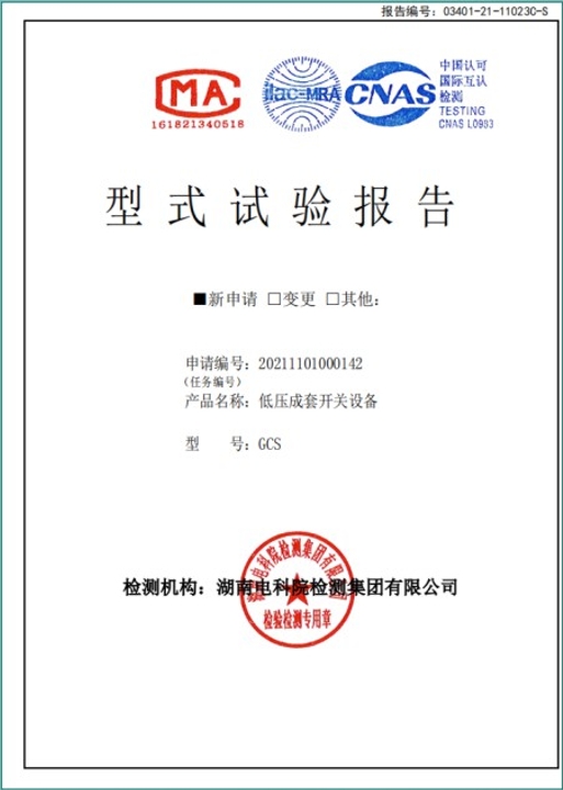 GCS1600A低壓柜型式試驗(yàn)報(bào)告